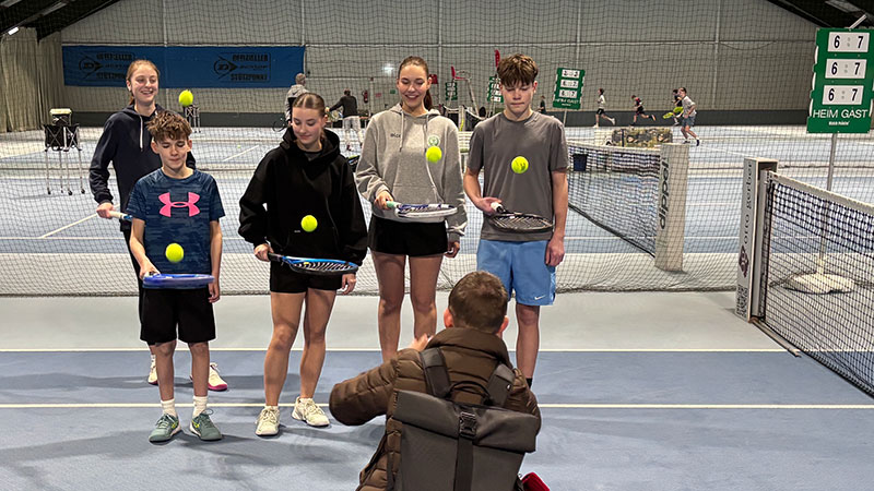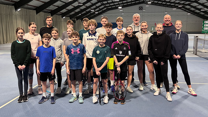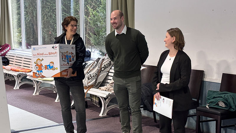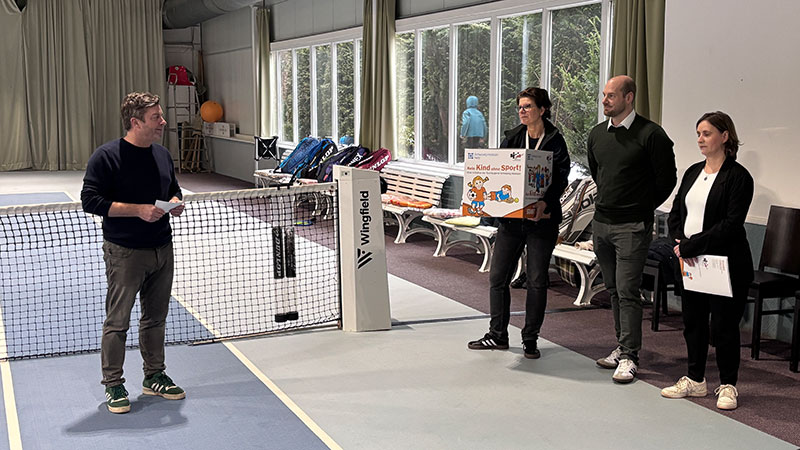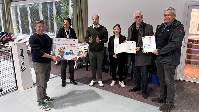 Henstedt-Ulzburg (Rhen), 11.2.2026. „Großer Bahnhof“ während des Kinder- und Jugendtrainings in unserer Tennishalle: In Anwesenheit der HU-Bügermeisterin Ulrike Schmidt, Mitgliedern des TCA-Vorstands sowie Vertretern der Schleswig-Holstein Netz GmbH und der Presse wurde der TCA von der Sportjugend Schleswig-Holstein im Rahmen der Initiative Kein Kind ohne Sport! für die erfolgreiche Nachwuchsarbeit ausgezeichnet.